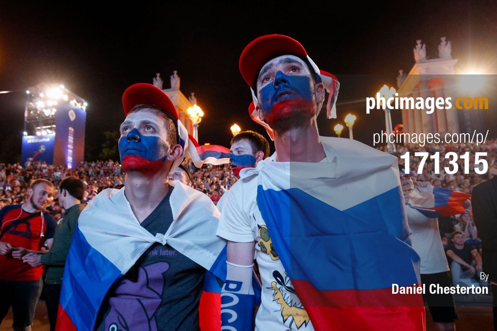We battled our way to the front where there were platforms for media and also some space to wander freely. The atmosphere was electric but the teams went in at half-time at 0-0. We wanted just one Russian goal as we knew the place would go ballistic.