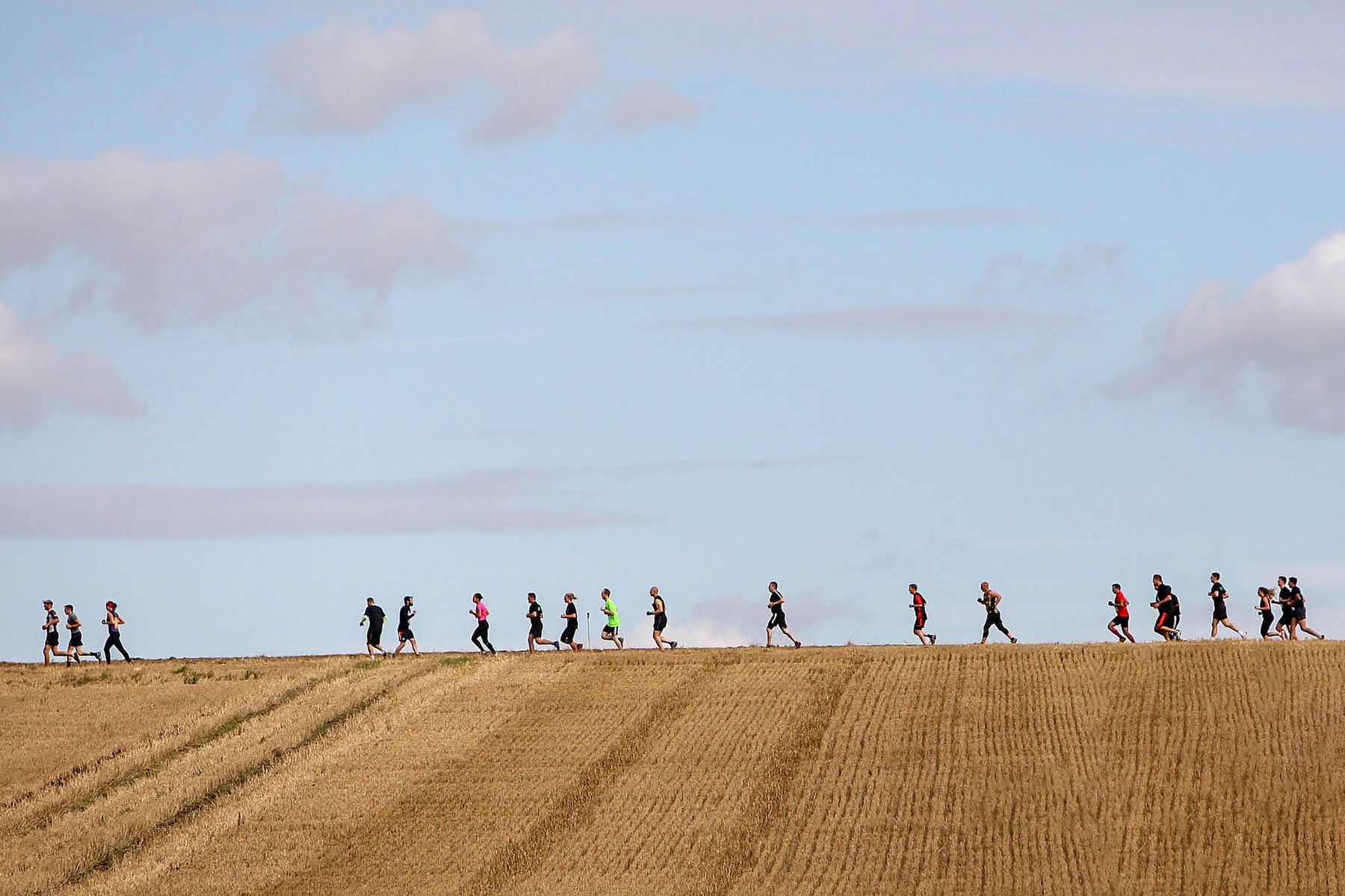 Mike Hartfield reacts after a jump during the Men's Long Jump at the 2015 Great CityGames Manchester