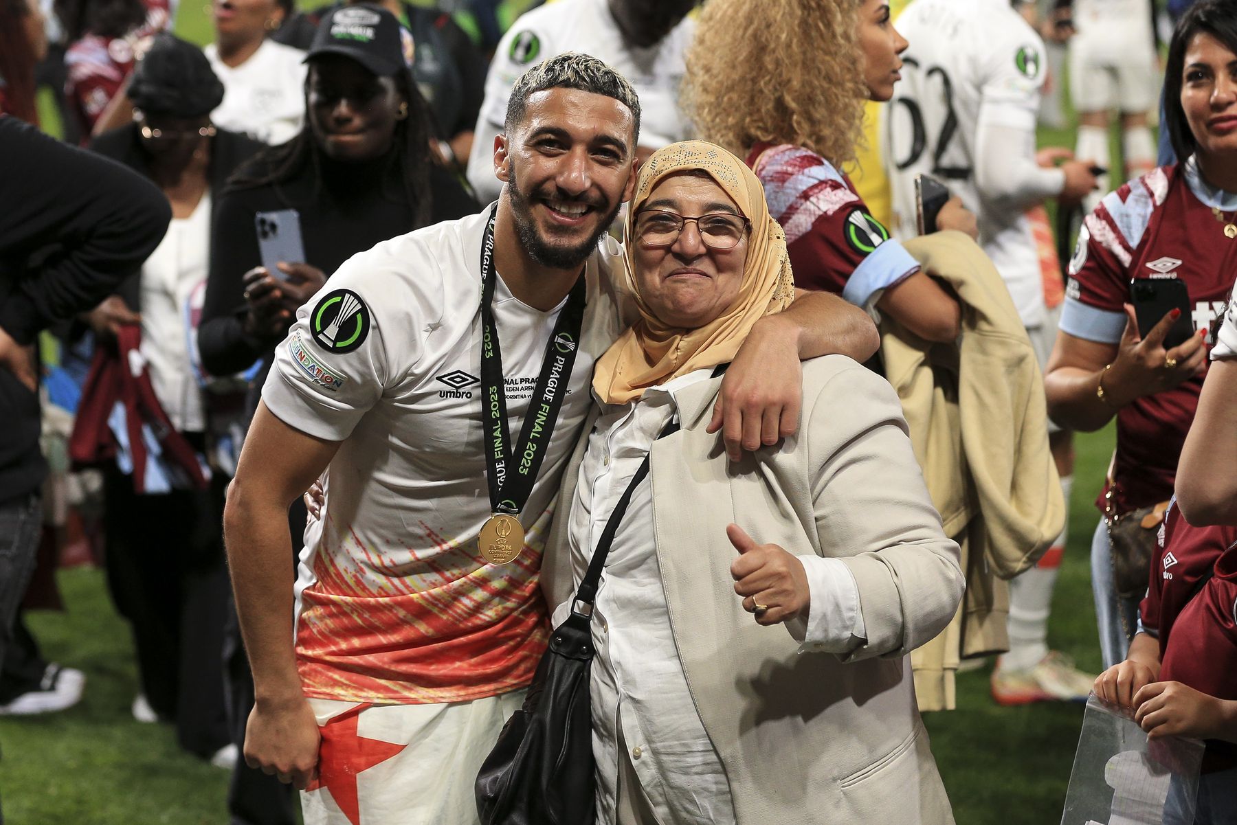 Said Benrahma celebrates with his Mum after the match