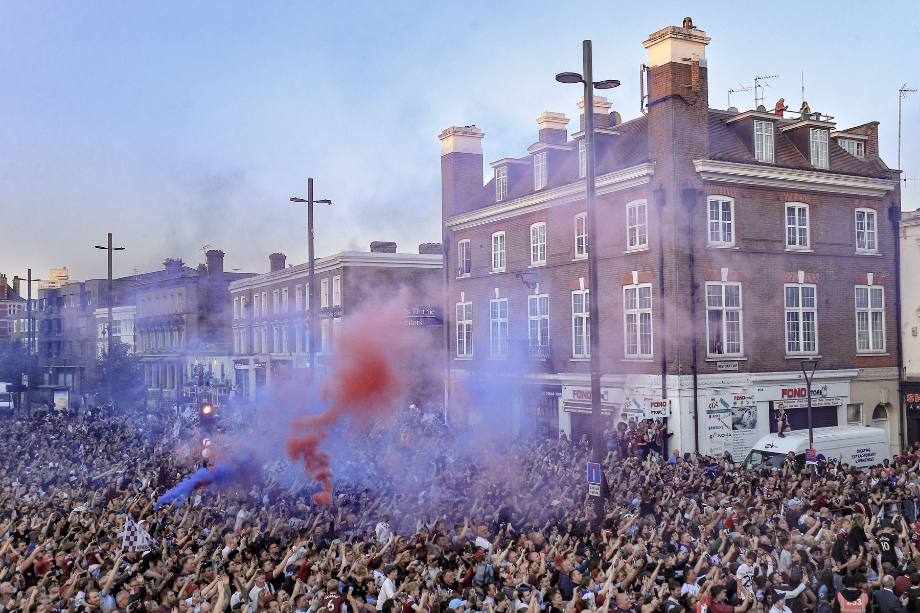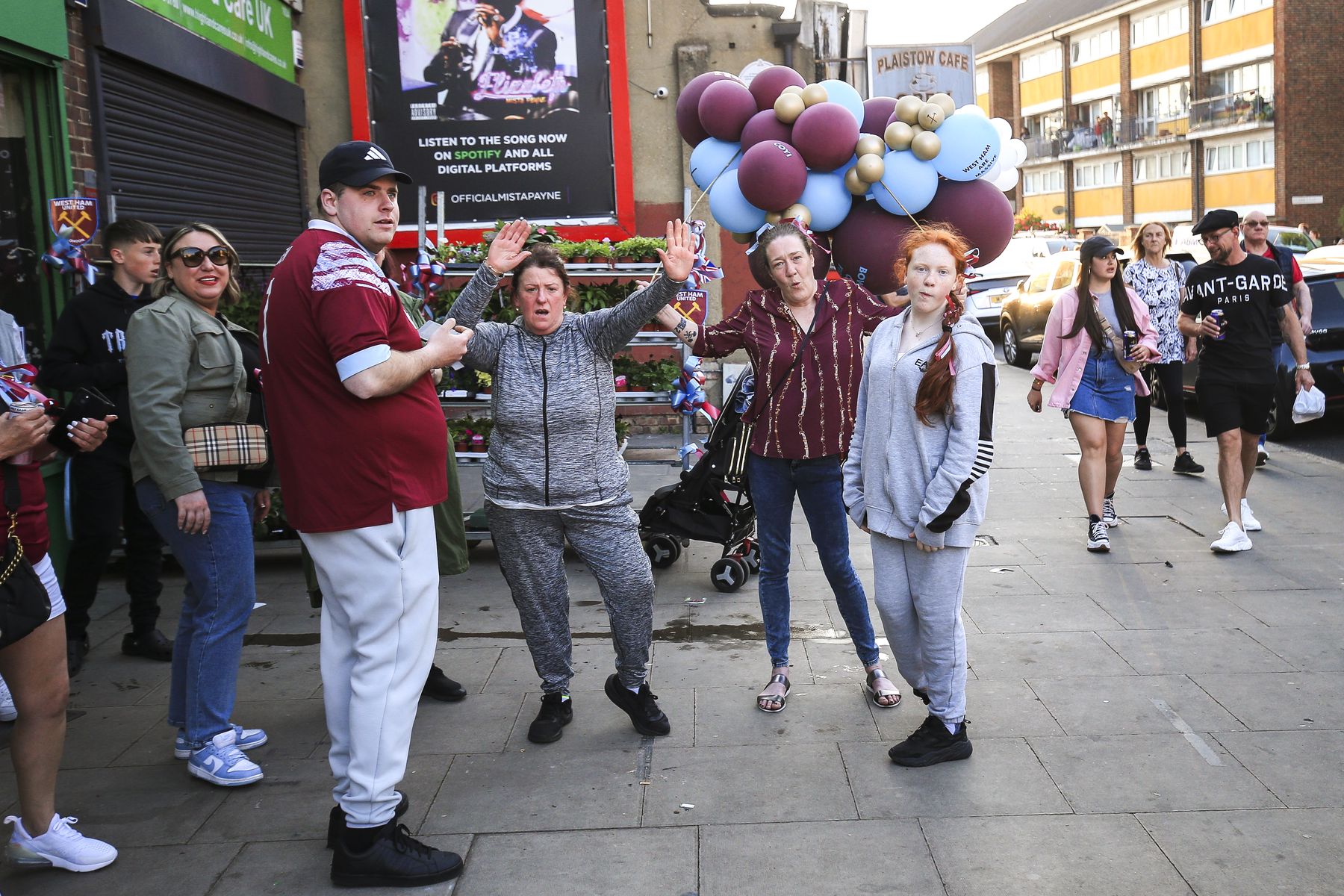 West Ham fans congregate in front of Stratford Town Hall