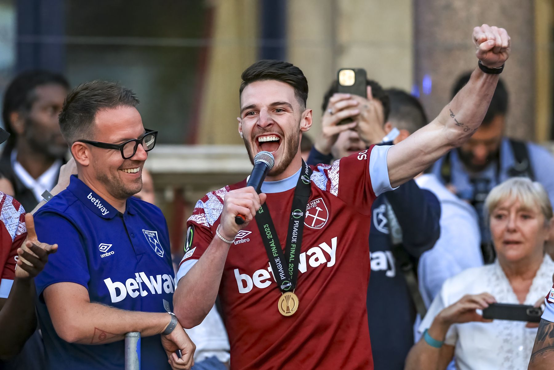 Declan Rice lifts the trophy