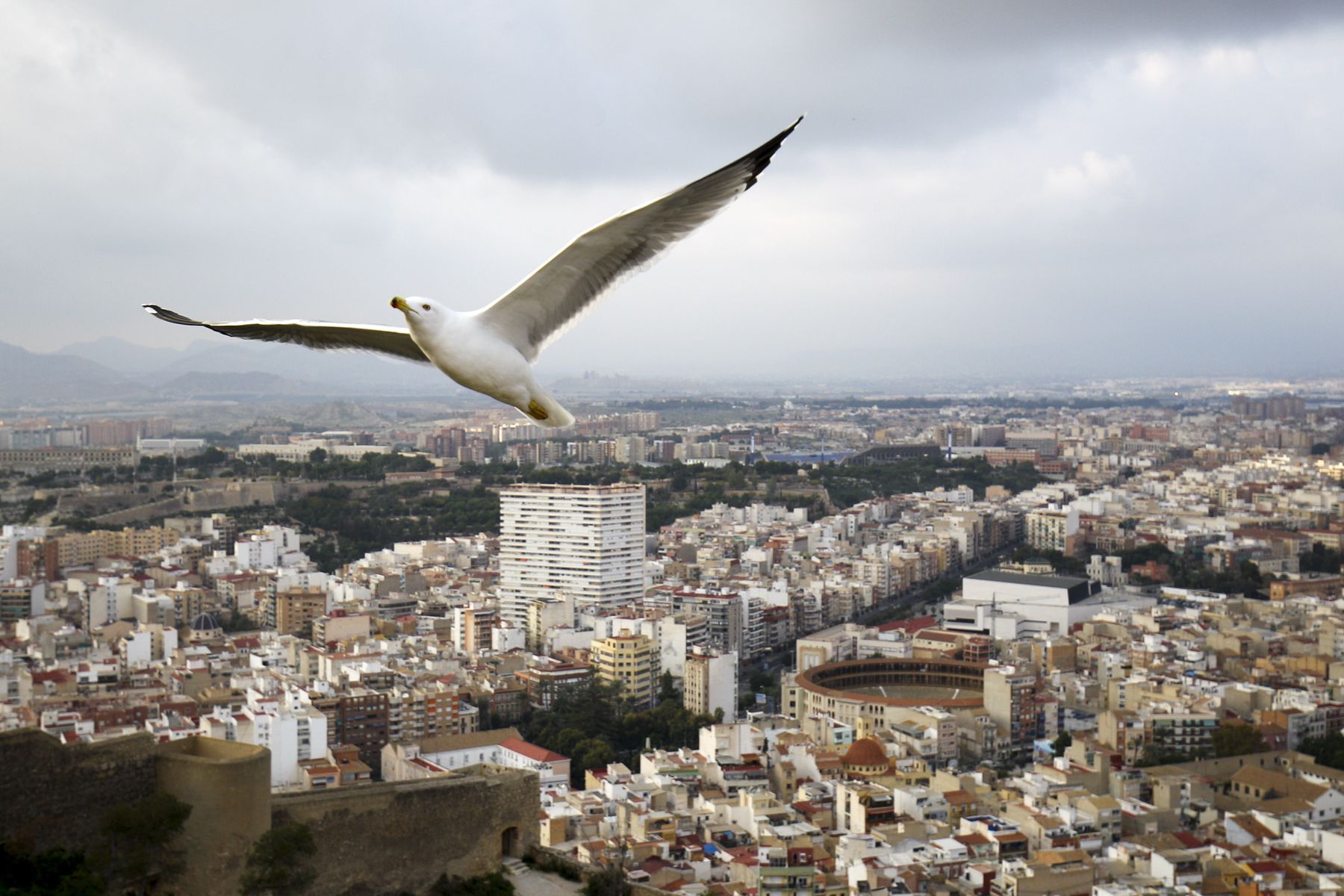 A seagull flies over Alicante